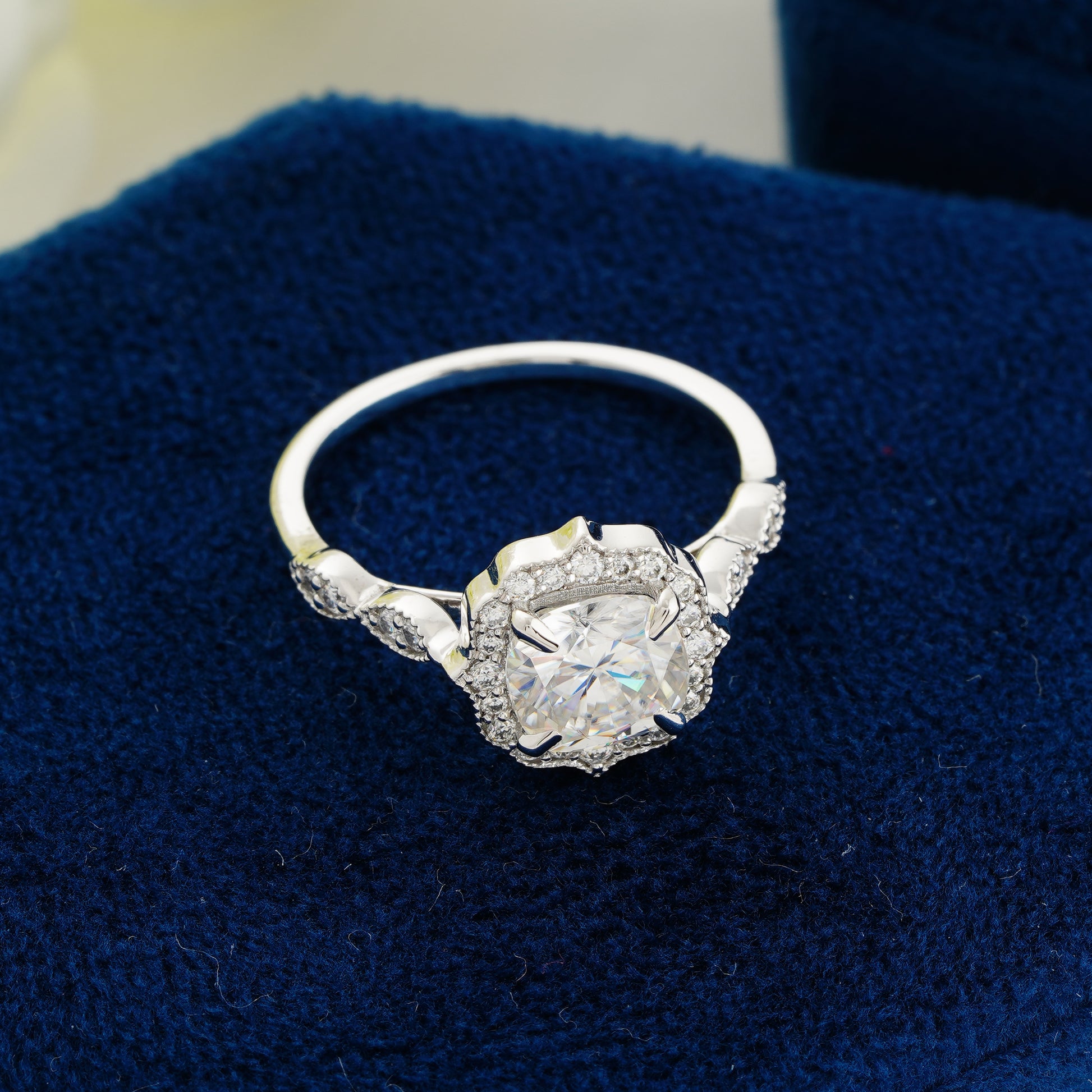 Inspired by the delicate bloom of a morning flower, the Blooming Grace Cushion Diamond Ring captures a love that unfolds with elegance and light. At its heart glows a 1.5 CT cushion-cut diamond (7×7 mm), radiating a gentle brilliance that feels both warm and everlasting.
