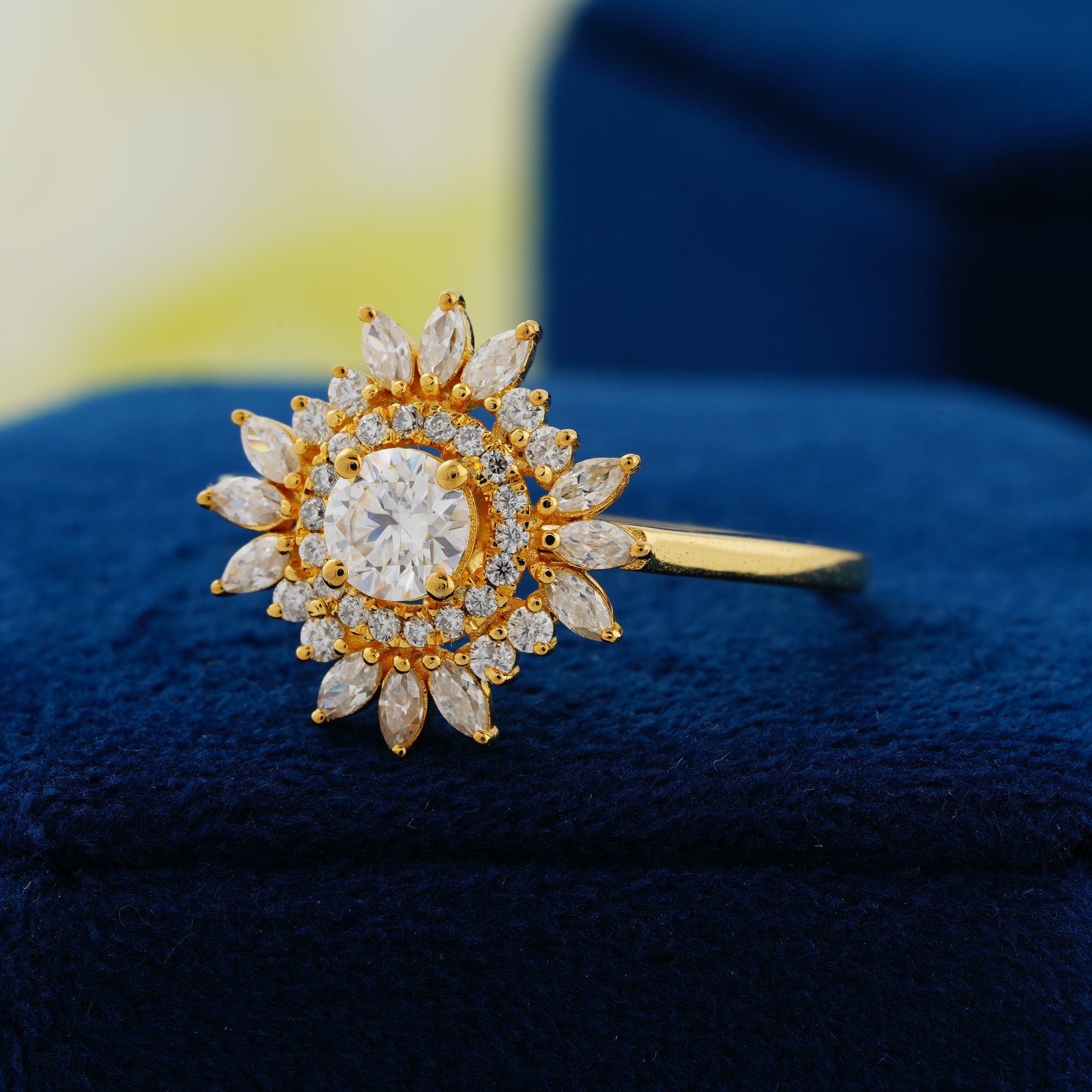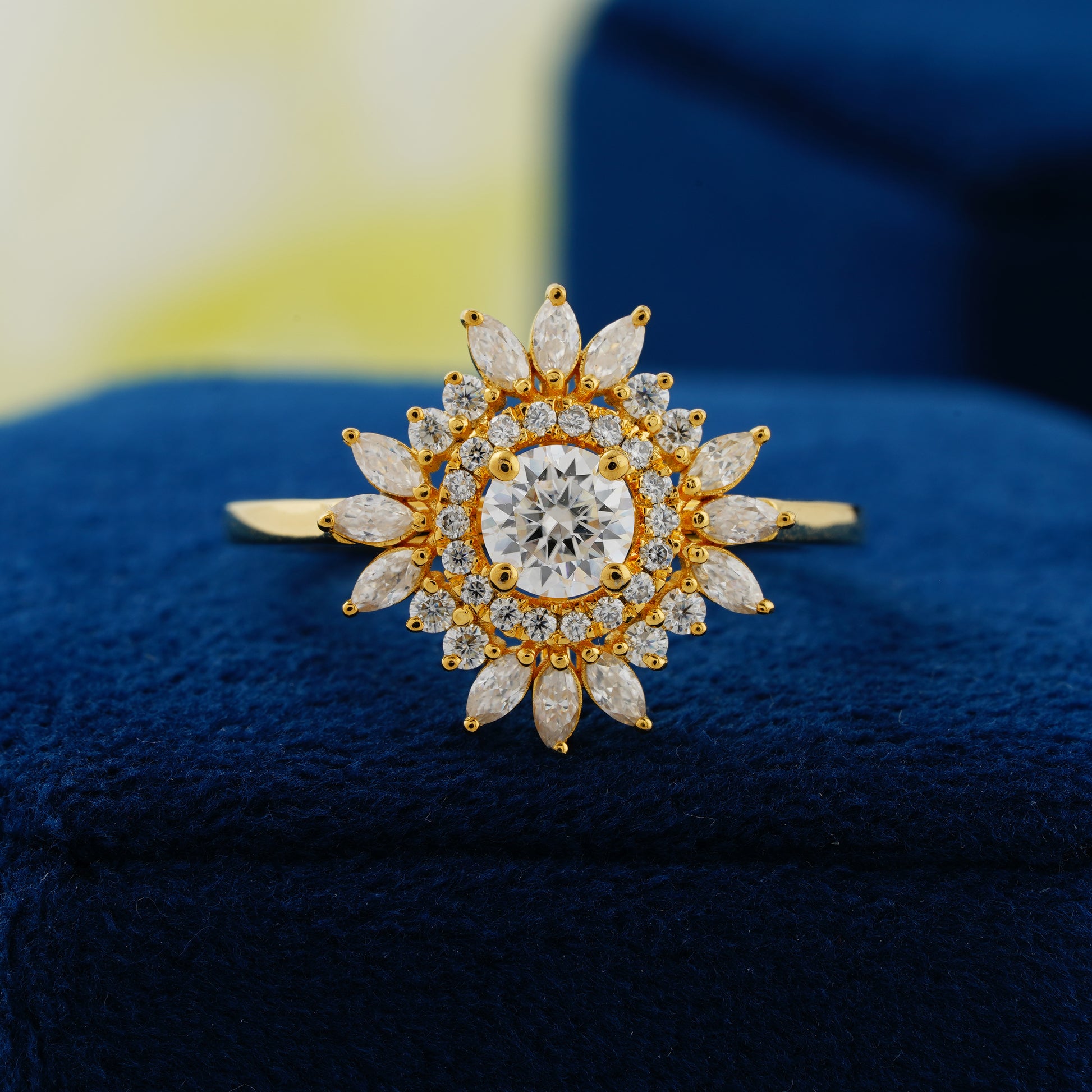 0.50 CT Round Cut Lab Grown Diamond Floral Halo Engagement Ring – The Bloom of Forever