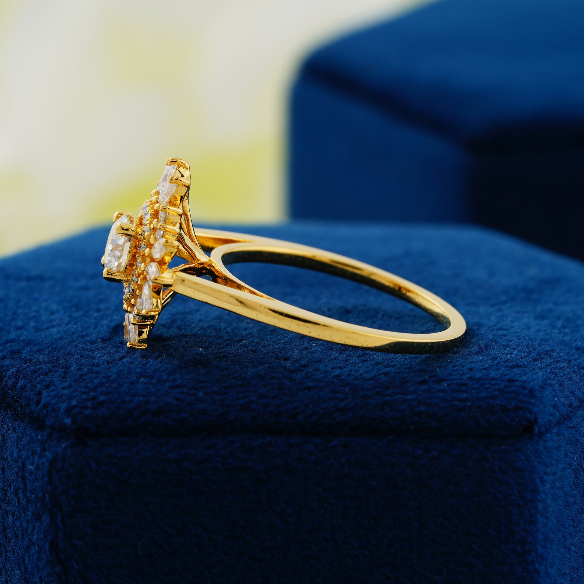✦ A whisper of forever — this 0.50 CT Round Cut Lab Grown Diamond Floral Halo Engagement Ring is an intimate celebration of love and light. The luminous 0.50 CT center round is framed by a delicate halo of marquise and round diamonds totaling 0.52 CT, forming a soft, floral silhouette that sparkles with every heartbeat.