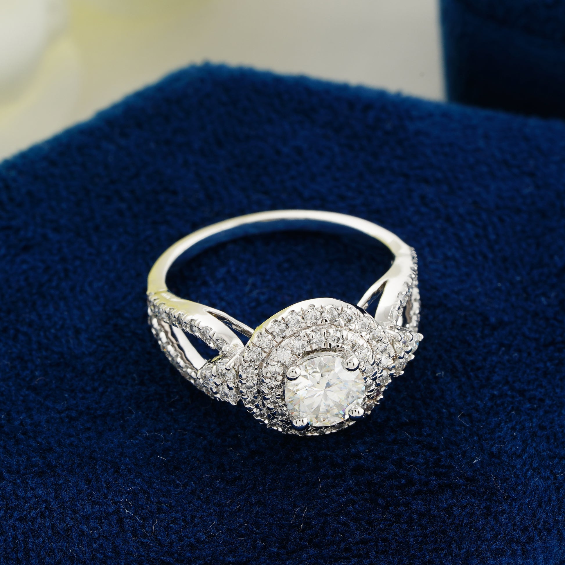0.70 CT Round Diamond Double Halo Engagement Ring | Split Shank