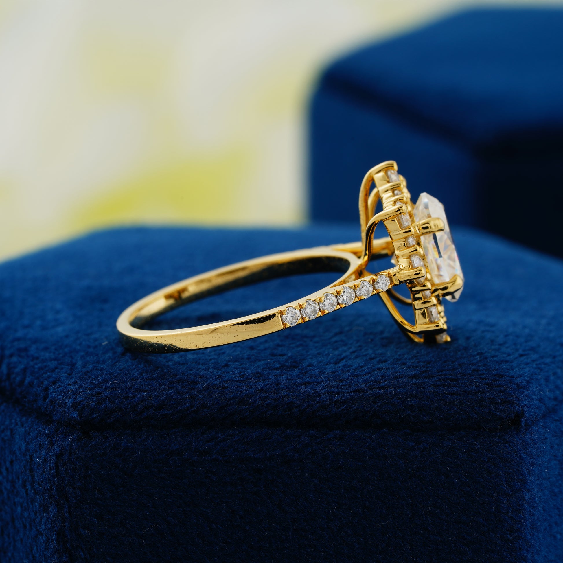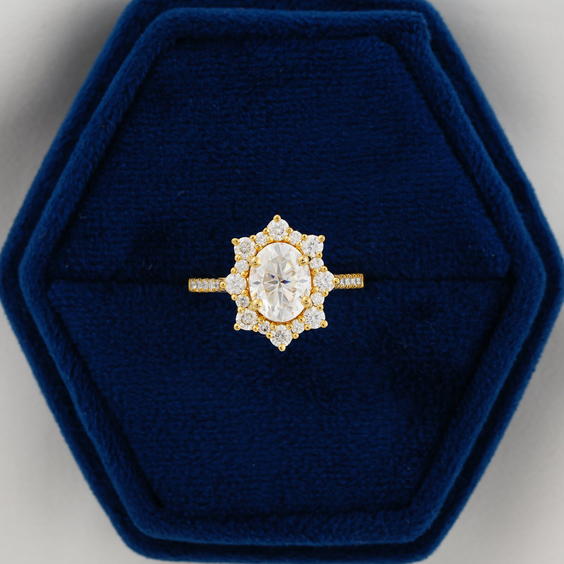 1.91 CT Oval Cut Lab Grown Diamond Halo Engagement Ring – A Bloom of Eternal Love