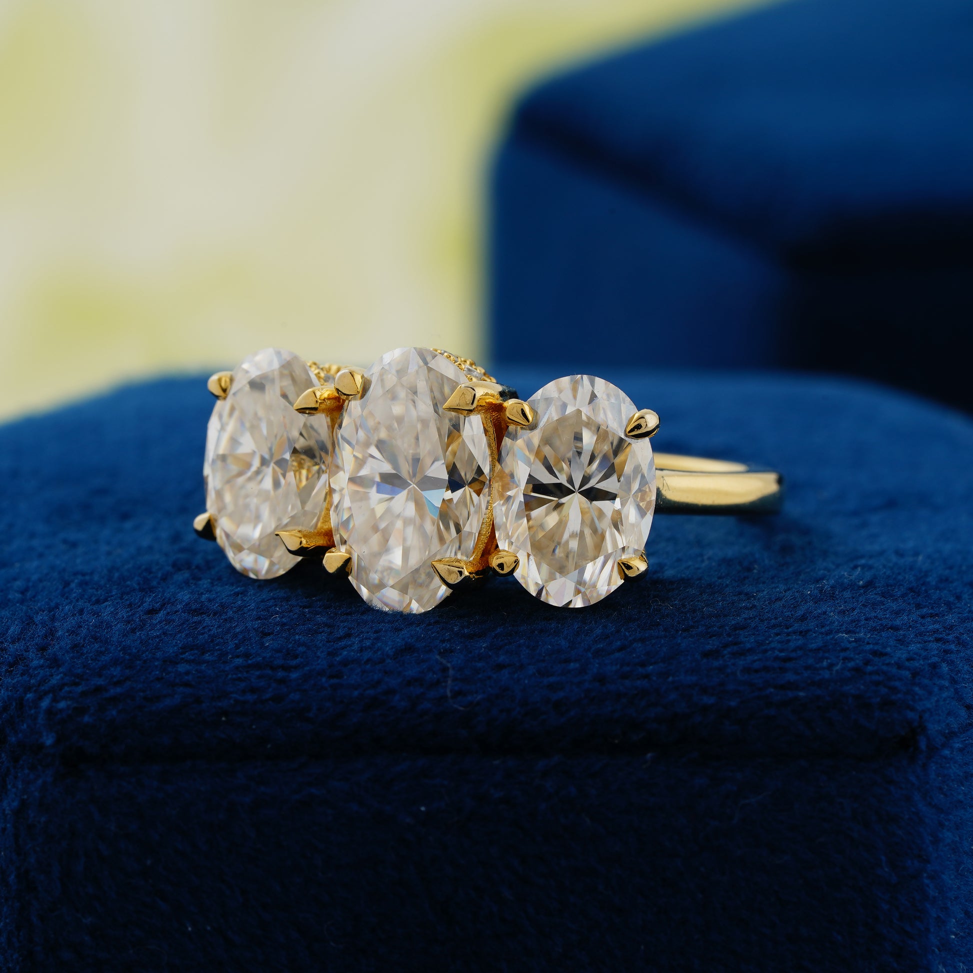 ✦ A symbol of eternal brilliance — this 2.35 CT Oval Cut Lab Grown Diamond Three-Stone Engagement Ring is a perfect harmony of elegance and radiance. The graceful center oval is enhanced by 3.65 CT of side diamonds, creating a stunning balance of fire and symmetry.