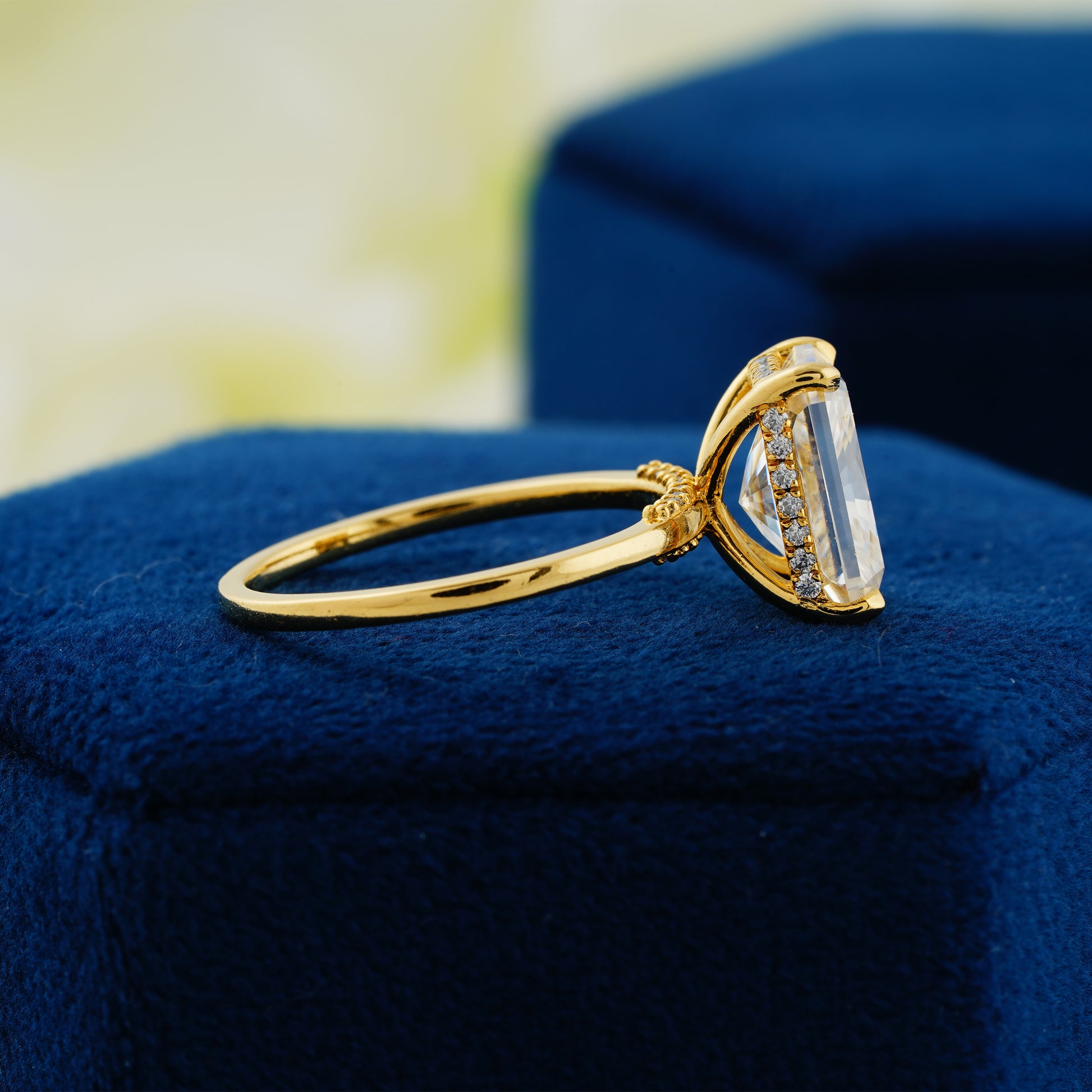 ✦ Modern brilliance meets timeless charm — this 4.15 CT Radiant Cut Lab Grown Diamond Engagement Ring with 0.26 CT round side stones is crafted for a clean, elegant look.