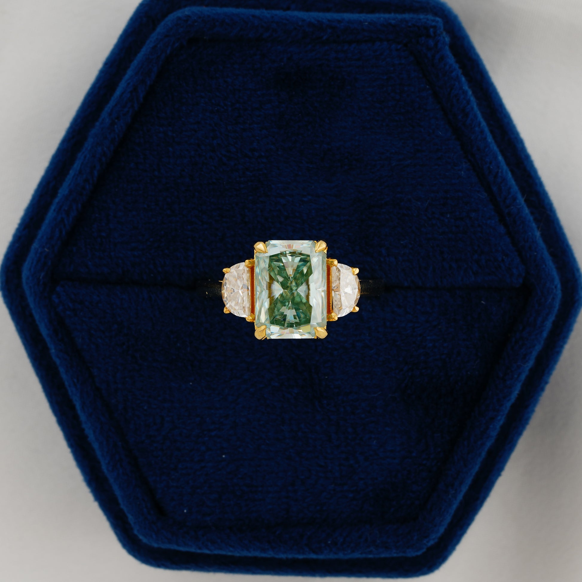 4.4 CT Blue-Green Radiant Cut Lab Grown Diamond Engagement Ring - The Ocean’s Heart